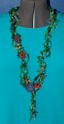 I used some of my left over beads with more supplements from my collection to make a pair of earrings as well as two bracelets that I could wear with the necklace. Making my own ear wires was a first for me as was using wire to make toggle clasps and I love how they turned out. None of them take much wire and are very cost effective and they can be customized to go with the jewelry.